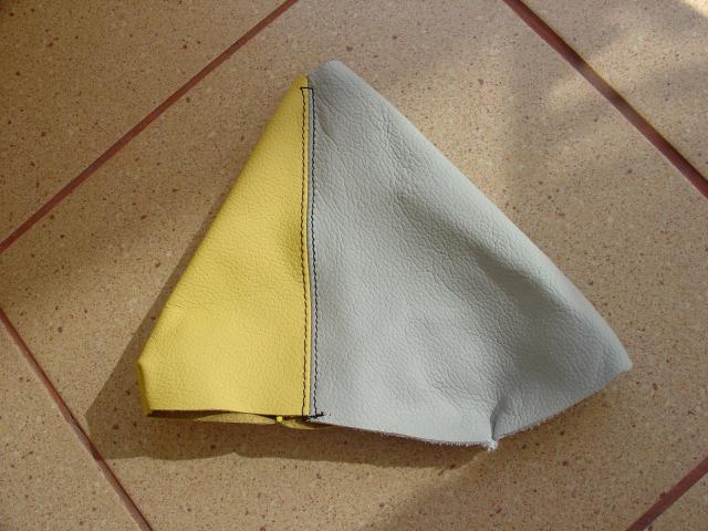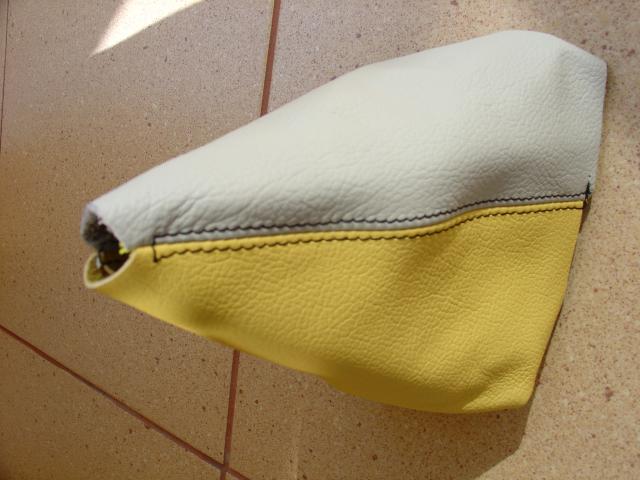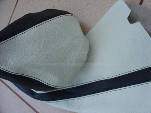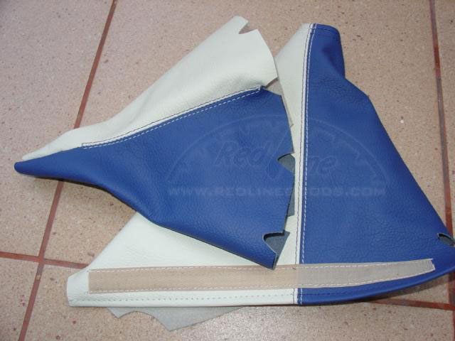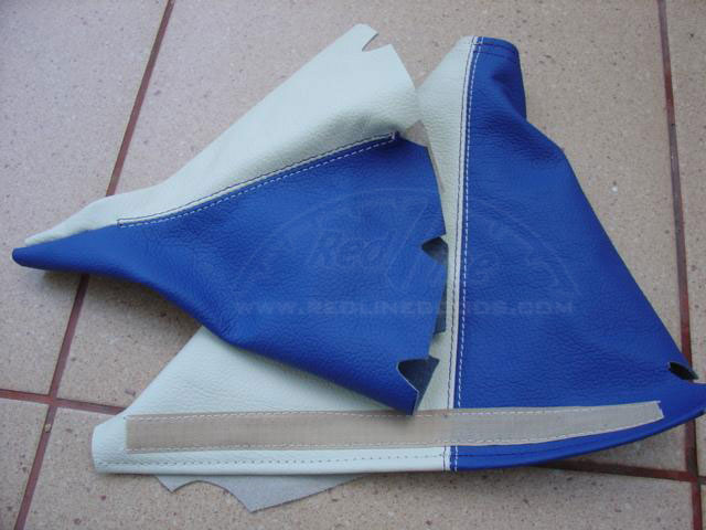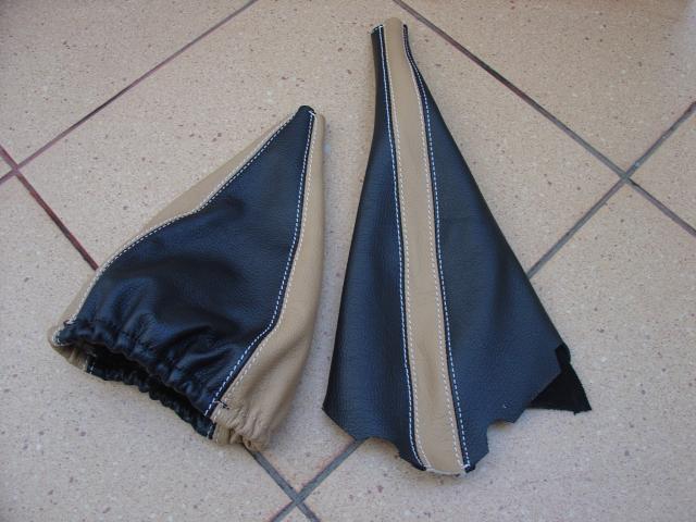 here is a picture of our VERY custom work done for a 05GT: a custom made ebrake boot and an automatic transmission shift boot. None of these were available before we designed them! The colors are charcoal and black leathers with red stitching. The picture kind of shows the difference between