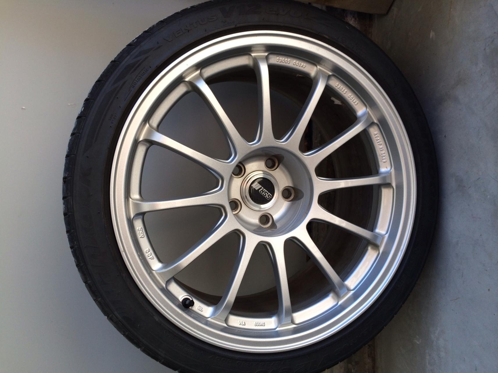 Last year i purchased these wheels for my g35 off a fellow in Houston who goes by Mysterymann on the forums. When i recieved the wheels, i sourced the achilles tires barely used off a local, a bought the hankooks new. I put on roughly 1500 miles before i removed the wheels and traded the car in, leaving me with these gorgeous wheels and fresh tires stored indoors. As pictured below the front wheels are in perfect condition, one rear has a small flat spot along with a tiny scratch on the lip, the other rear has a small curb as well. Authentic valve stems and center camps included. located in winnipeg canada, pm if interested.