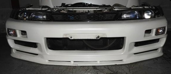 I was wondering if anyone of you knew what kind of bumper is that, the owner said it is a S14 Kouki GTR bumper but I can't find the anything similar on google. It looks like a R34 GTR V-Spec front bumper but the sides are different (no vents on this one, vents on the skyline ... )