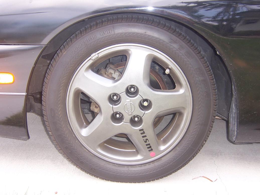 stock wheels painted gunmetal with nismo logo