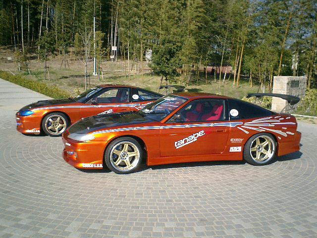 Picture taking in Waikiki with Fumiaki Komatsu, Kazuya Bai, Kosuke Kida, and the Signal Auto Drifter Twins (S15 front Sil-Eighties)